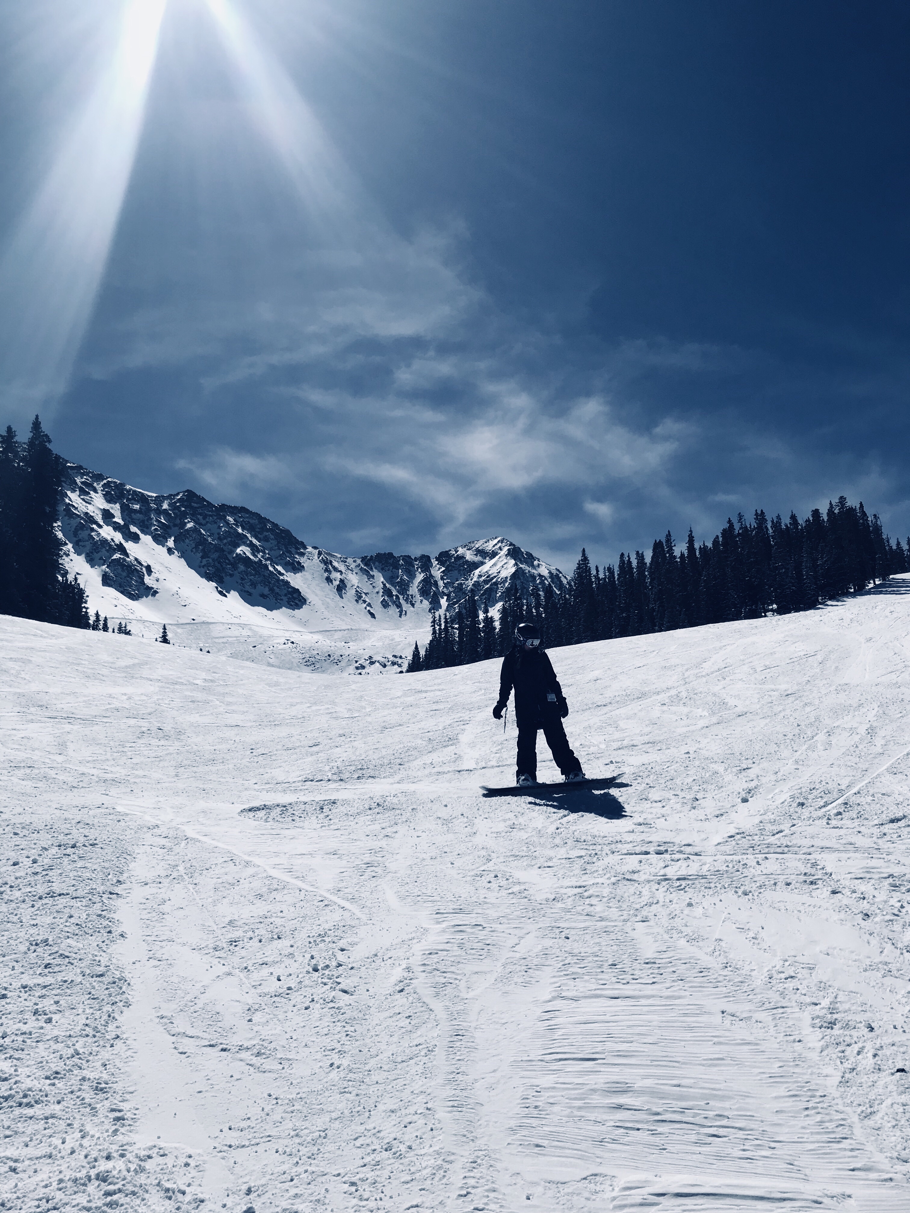 Tanner brought me to Arapahoe Basin, close to his usual spot at Keystone. I rented some snowboarding gear from Happy Sport Ski Rental in Parker, and we headed to the mountain early Sunday morning.