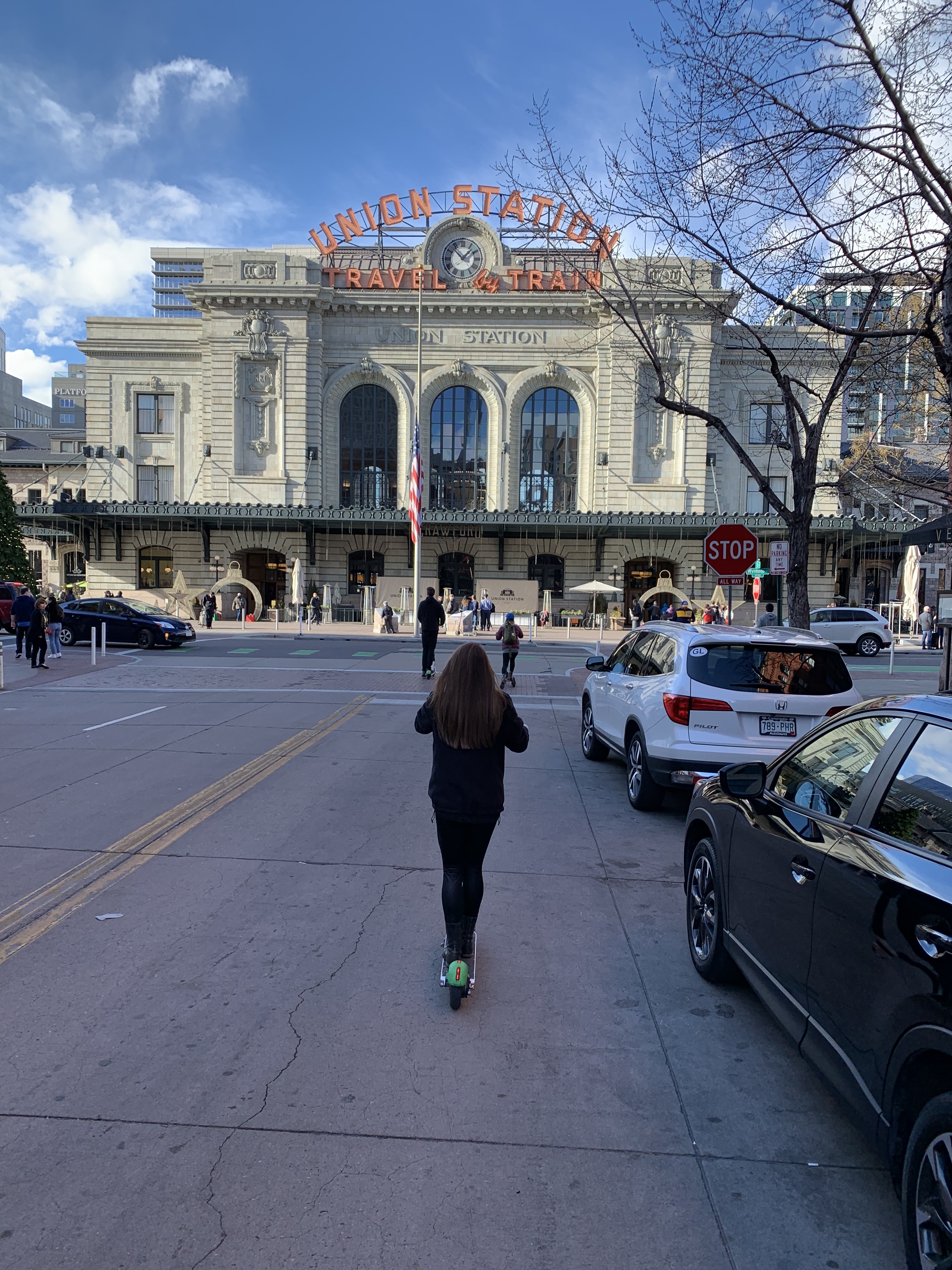 On this date, we started out by parking on a street in RiNo (Denver’s art district) where there are colorful murals everywhere you look (my favorite). We downloaded Lime, an app that allows you to rent electric scooters/bikes, and began to explore around Union Station!